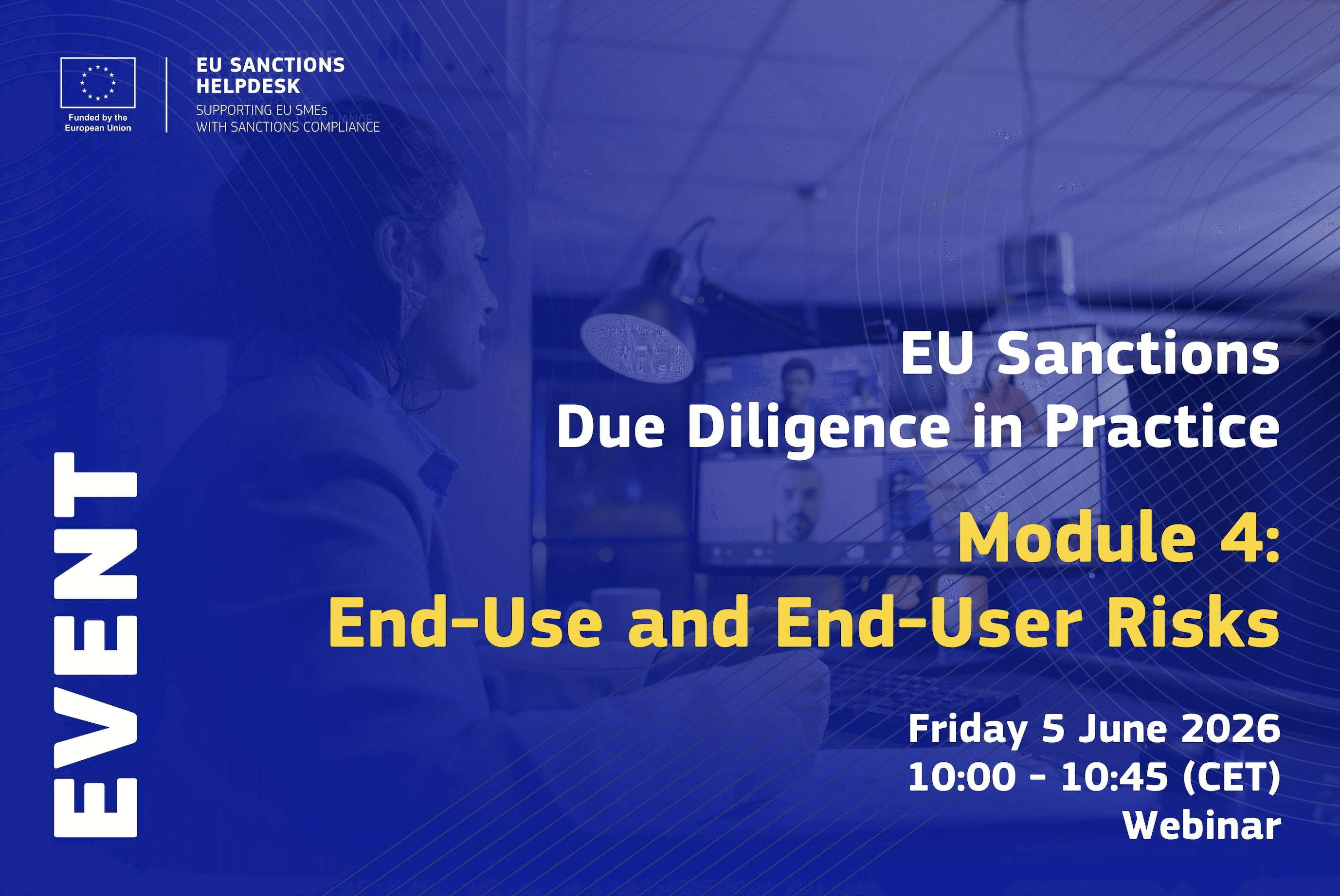 Module 4 - End-Use and End-User Risks, 5 June 2026, 10:00 - 10:45 CET: The final module will reinforce why sanctions compliance matters, why end-use and end-user checks are essential, and how day-to-day vigilance protects the company, the public, and individual staff. Register here.