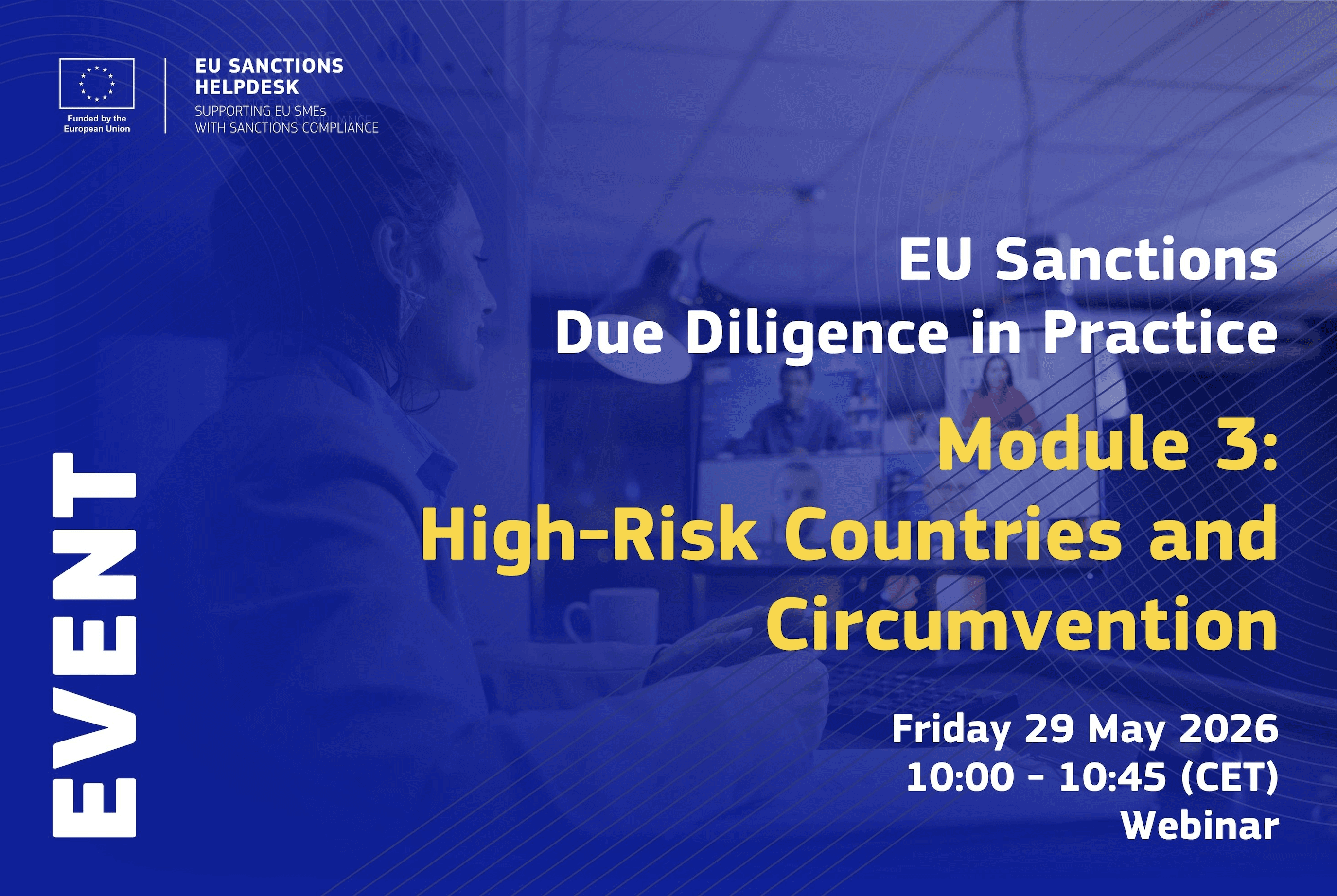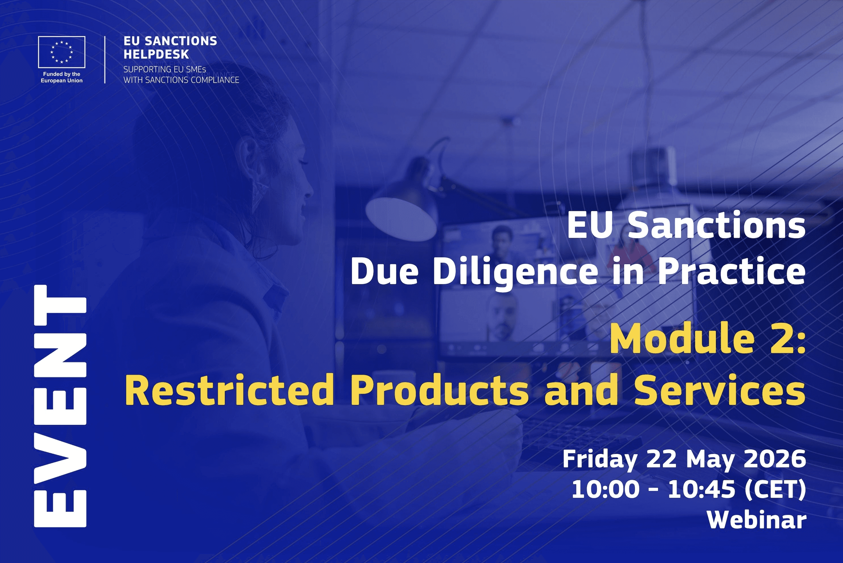 Module 2 - Restricted Products and Services, 22 May 2026, 10:00 - 10:45 CET: This module will help participants determine whether goods, technology, or services are restricted under EU sanctions, as well as applying practical screening steps. Register here.